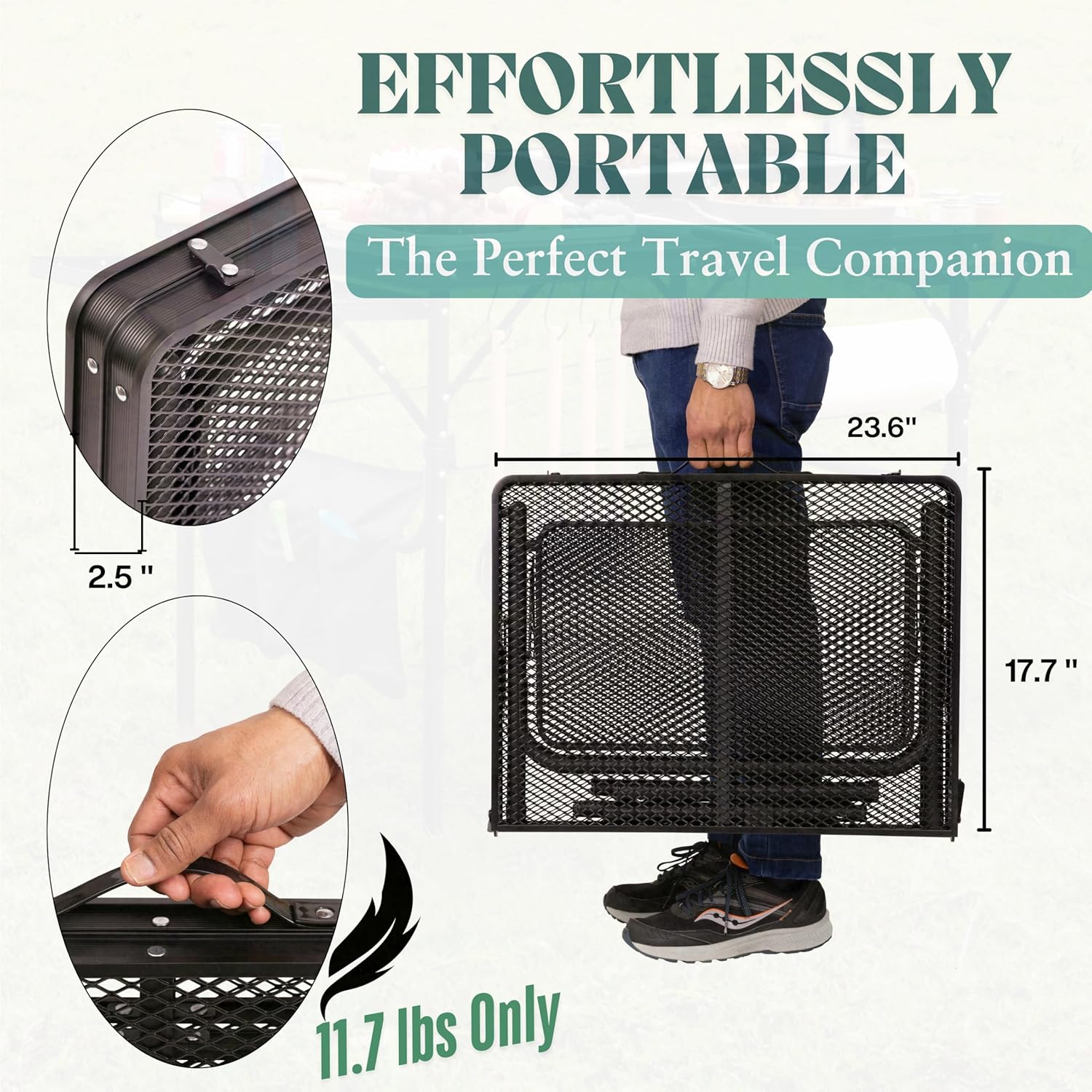 - β Weather-Resistant: This metal portable camp table features a heat resistant and water- resistant surface. This small folding table portable design endures the elements. Its durable construction with exclusive coating guarantees long-lasting use as an outdoor dining table.