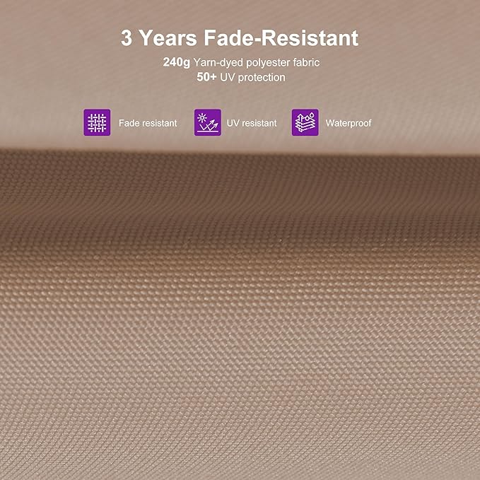 - Upgraded Fabric: This patio umbrella is made from 240 gsm yarn-dyed polyester fabric, which is highly effective in providing sunscreen protection, waterproofing, anti-ultraviolet and fading