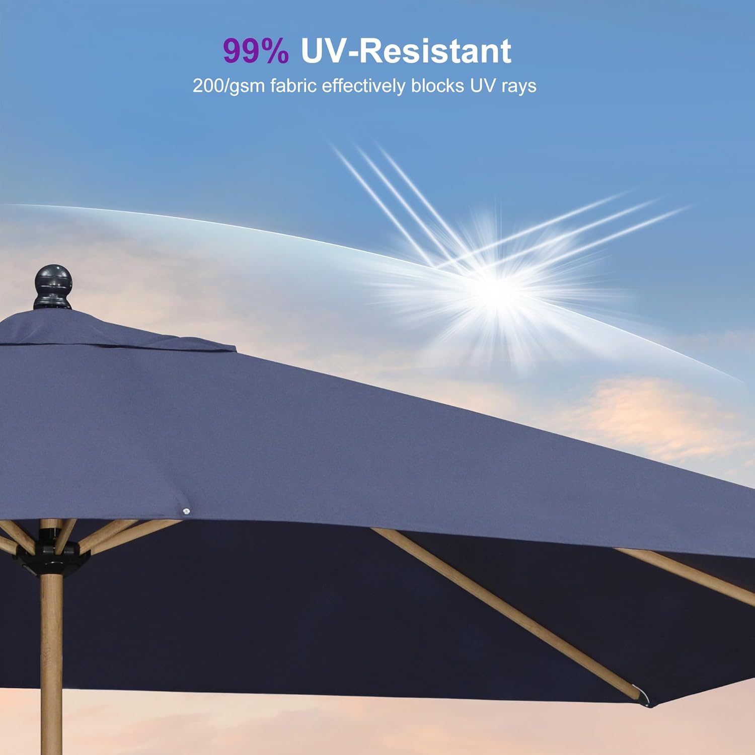 - Premium Fabric: Table umbrellas are made from 200 gsm waterproof polyester fabric with a UPF 50+ rating and AATCC Level 4 for excellent UV protection and fade resistance
