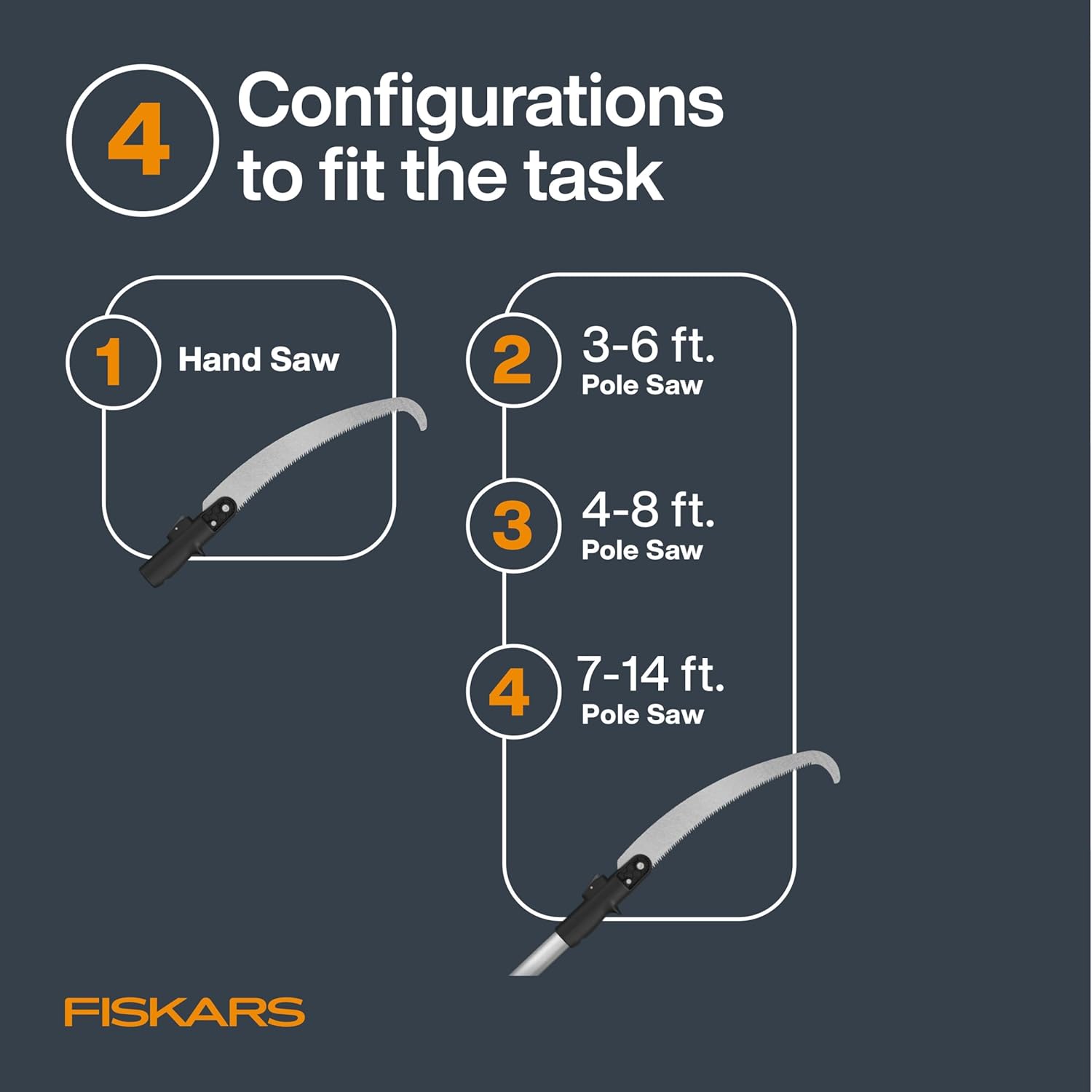Fiskars XtendControl Extendable Tree Pruner (14 ft), Adjustable Branch Trimmer with 15" X2 Hook Bill Saw, 3-6 ft & 4-8 ft Extension Poles, and Secure Locking System for Precision Cutting