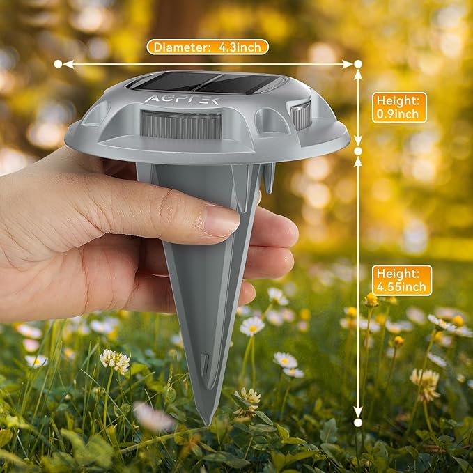- 【2 Colors In 1】Warm Light & White Light, Two Color Options for you to choose. Unlike other single color solar deck lights, dual-color driveway lights let you can freely choose color to fits different needs, like holiday decoration or daily used.