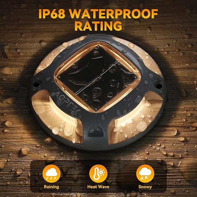- 【Heavy Duty Solar Lights】Made of Premium Aluminum Material, able to withstand 3 tons of pressure from vehicle, trucks and boats. No need to worry about these marine dock lights being damaged due to crush or hits while located on driveway or outside boat dock.
