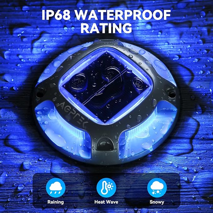 - 【2 Colors In 1】 Blue Light & White Light, Two Color Options for you to choose. Unlike other single color solar deck lights, dual-color driveway lights let you can freely choose color to fits different needs, like holiday decoration or daily used.
