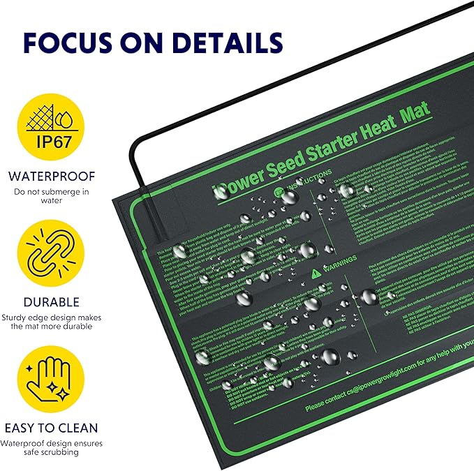 • Stable and uniform heat: the thickened heat conducting wire is evenly laid on the heating pad the heat conduction is fast and the temperature is balanced, to avoid the uneven temperature of the heating pad to damage the seed germination.