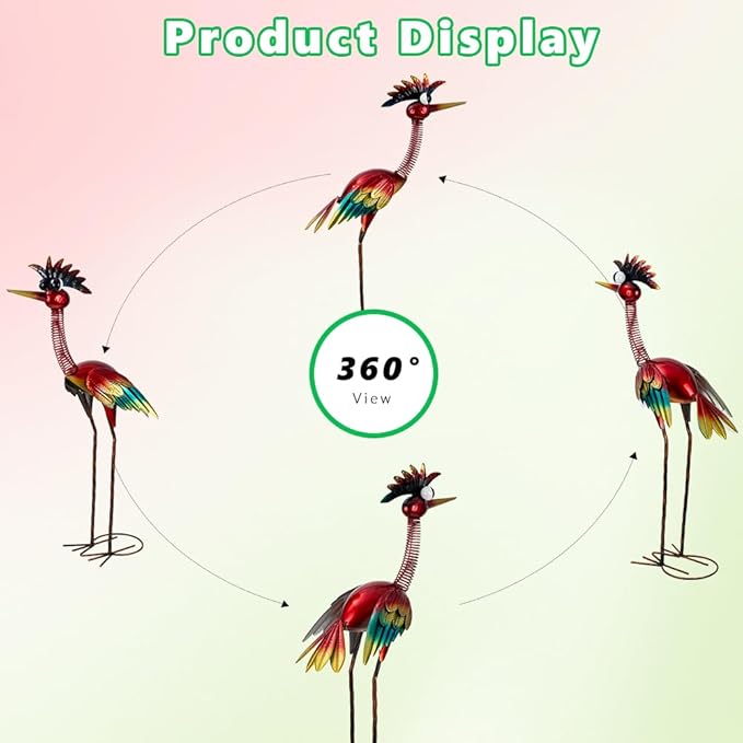 - Attractive Design: The rooster garden sculptures & statues have a unique design, with shaking wings and a neck designed as a movable spring to add fun and interaction. The feathers on the garden statues for outside are colorful and suitable for garden decoration
