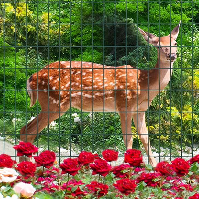 Green PVC Coated Welded Wire Fence 36 Inch x 50 Foot, 2 Inch x 4 Inch 14GA, Garden Border Fencing Roll Vinyl Coating Metal Wire Mesh Hardware Cloth for Yard Vegetable Plant Protection