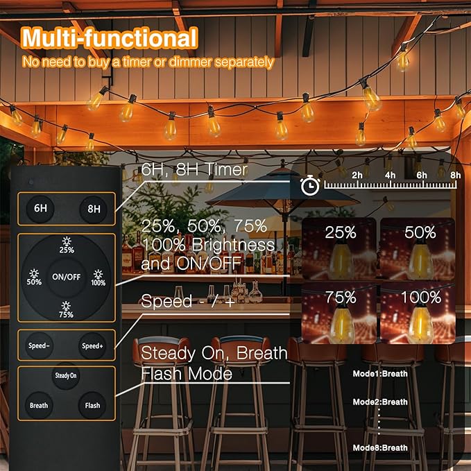 - Large Solar Panel: 50 feet solar lights outdoor string with a built-in 3 watt tempered glass solar panel for excellent charging performance in low light. ensuring your lights will operate well even on cloudy days