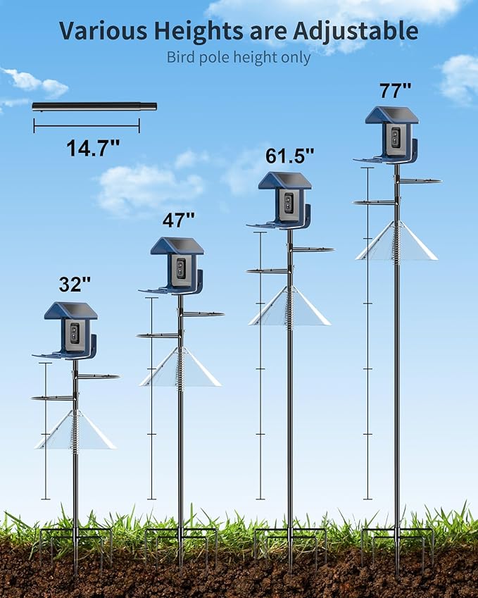 - Special Feature : Heavy duty metal material for long-lasting, PC Baffle and spring design for better Squirrel Proof, Reinforced 1-inch pole with 1mm thickness for wind stability, Slip-in method for effortless setup, Serrated edges and metal bukle for chew-proof Heavy duty metal material for long-lasting, PC Baffle and spring design for better Squirrel Proof, Reinforced 1-inch pole with 1mm thickness for… See more