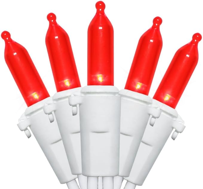 Red LED Christmas Lights - 100 Count Red Christmas String Lights for Tree, Party, Bedroom, Wedding, Indoor and Outdoor Valentines Day Decorations, 33 Feet White Wire, UL Certified, Connectable