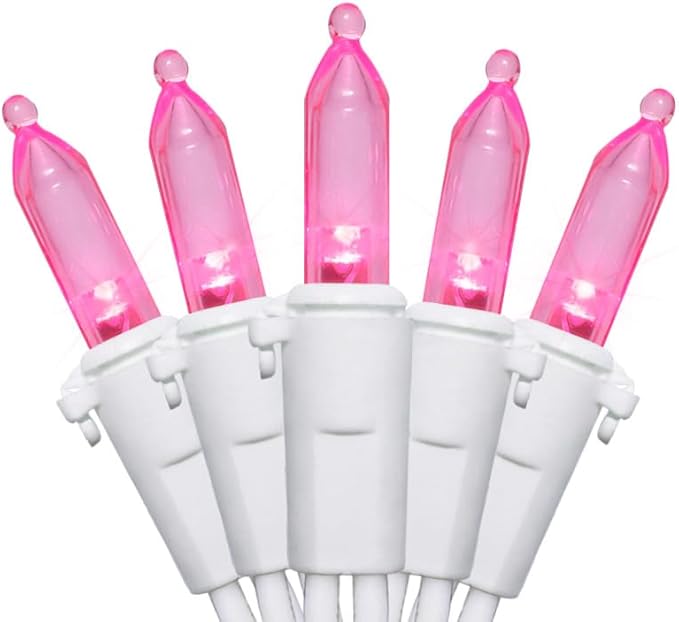 - 【Mini Valentine's Day Lights Specification】: 2 Sets - white wire chritsmas light string includes 100 count pink LED lights, total length 35.3ft, lights length 33ft and each led is 4 inches apart, 24 inches lead wire, 4 inches end connector (Extra 2 x bulbs and 1 x fuse included)
