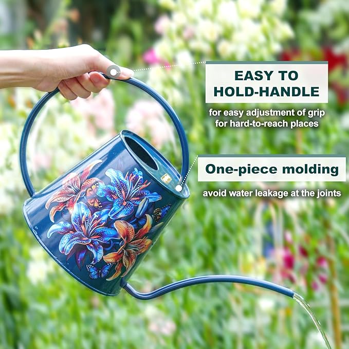 Berry&Bird House Plants Watering Can - Indoor&Outdoor 1/2 Gallon Stainless Steel Water Can with Long Spout Garden Decoration for Flower Bonsai Succulent Gardening Large Watwer Bottle (Lilium Brownii)