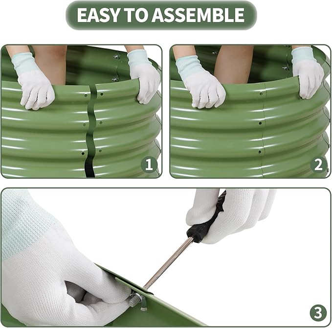 - 【High-Quality Materials & Durable】 Made from 0.7mm galvanized metal panels with double-layer anti-corrosion galvanization, this outdoor raised garden bed features a robust oval-shaped design for added strength and durability. Resistant to rust and corrosion, it provides a long-lasting gardening solution that can be reused for many years, ensuring a sustainable and reliable space for your plants to thrive