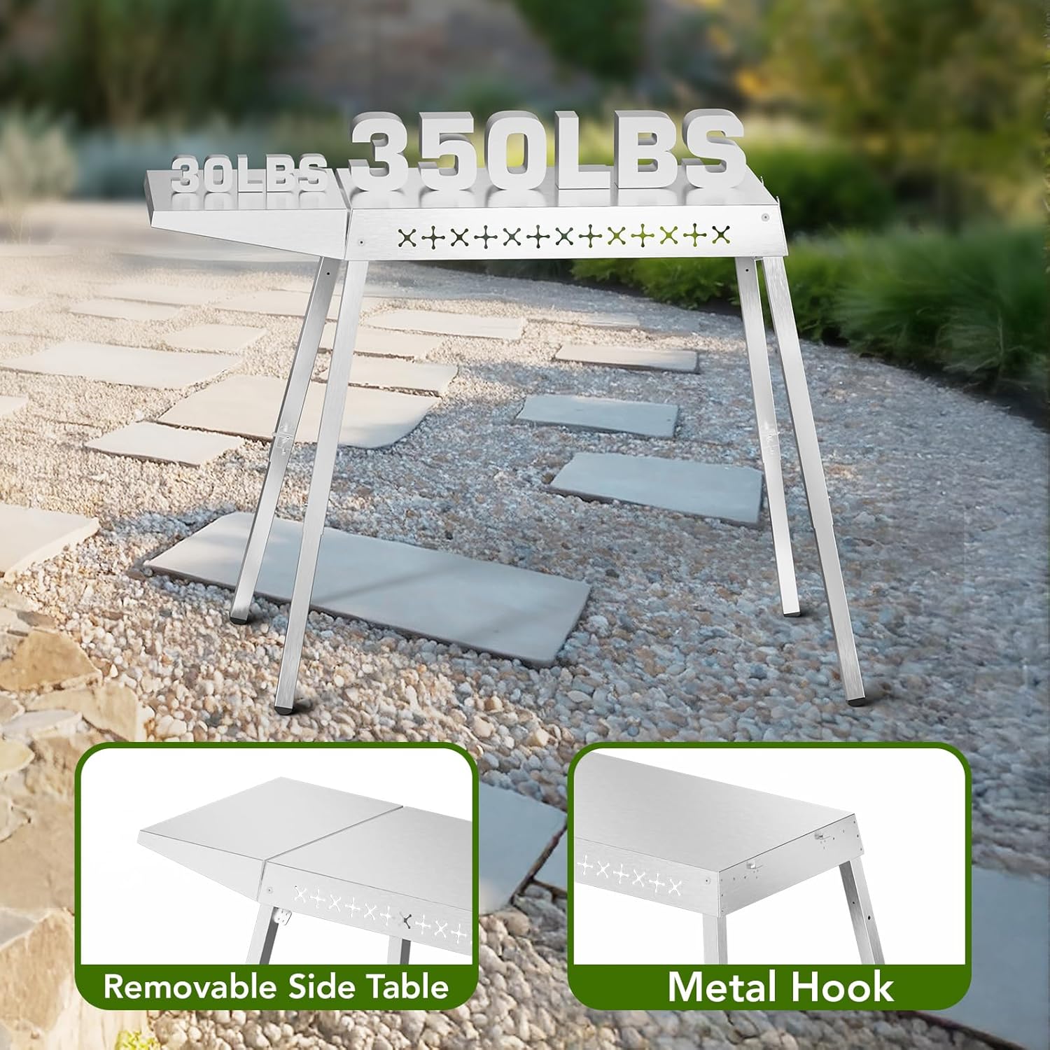 - User-friendly Design: The foldable grill table is suitable for 17 "-22" table top grills,raclette grill,electric grill and other grills. The foldable side table can be used as a preparation table or can be hung grill accessories, enhance your barbecue experience in all aspects.
