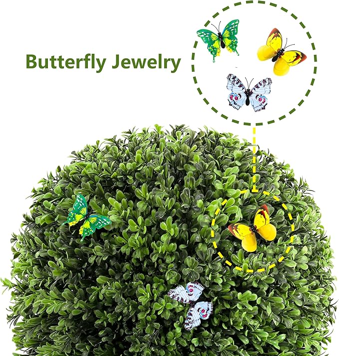 • 【Exclusive Nature-Inspired Design】 Stand out with TONAHUTU 28" UV-resistant faux topiary, the ONLY fake boxwood plants featuring lifelike faux vines and delicate fake butterfly ornaments. Crafted with premium silk foliage and reinforced polyethylene stems, this realistic boxwood artificial plants outdoor mimics natural textures while resisting fading for 5+ years in harsh sunlight