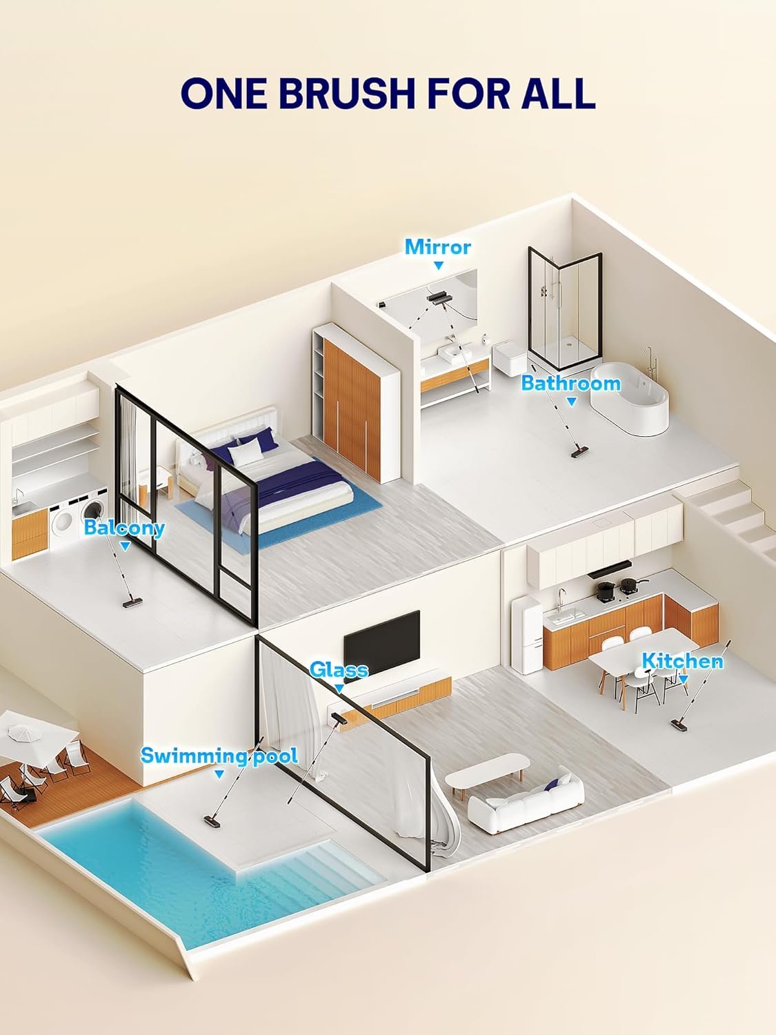 - ใMulti-scenario Floor Scrubber Brushใ: Whether dry sweeping or wet scrubbing, this floor brush with squeegee adapts to all your cleaning needs. Itโs effective on a wide range of surfaces or scenes including floors, tiles, mirrors, shower, deck, kitchen, bathroom and garage