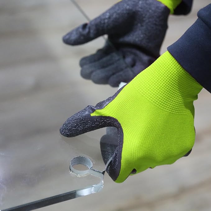• ★ TEXTURED COATING—Latex/rubber palm and finger crinkle coating, provides Anti-slip, Cut and Puncture resistant and repels light liquids.
