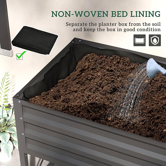 Outsunny Raised Garden Bed with Galvanized Steel Frame, Storage Shelf and Bed Liner, Elevated Planter Box with Legs for Vegetables, Flowers, Herbs, Dark Gray