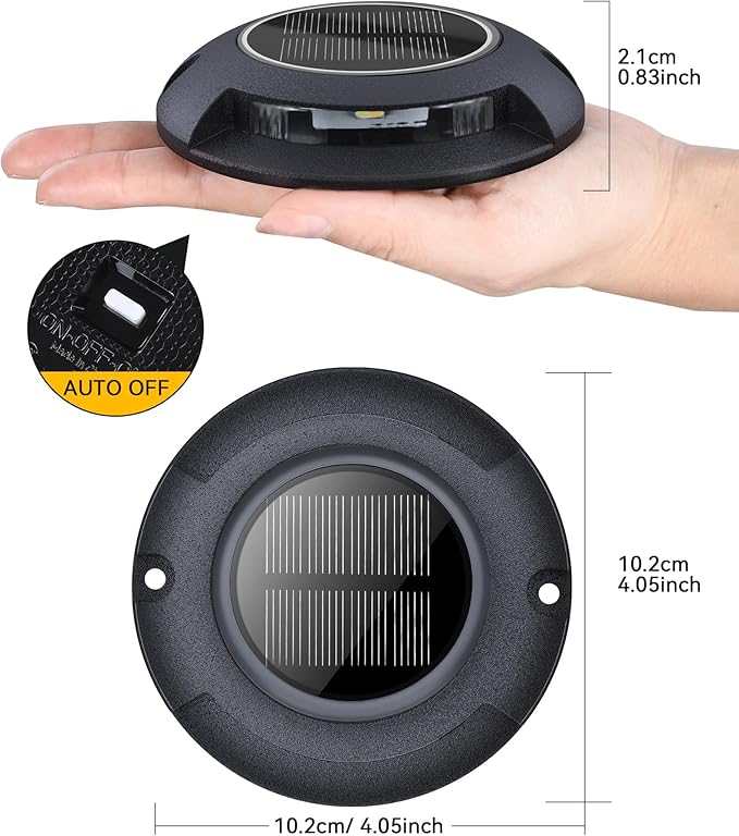 - 【Waterproof & Pressure Resistant】The solar lights outdoor waterproof is made of high-quality aluminum alloy and has been tested to withstand 5 tons of pressure and impact from cars and ships. The outdoor solar light meets the IP68 waterproof standard and can be used normally in any severe weather conditions. You don't need to disassemble it on rainy or snowy days
