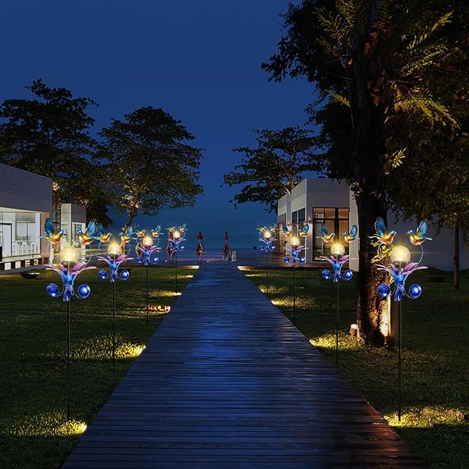 - Easy to Install - Simple assembly structure without extra screws, wiring or external electricity required. Just stick the bluebird garden stake into the soil, turn it on using the solar panel's power button, then enjoy your garden ornament as it softly glows automatically from dusk
