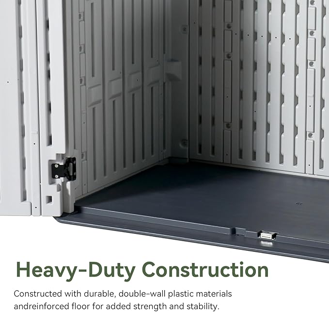 - 【Waterproof and Weather-Resistant Construction】Built with high-quality, durable resin material, this storage shed is fully waterproof and designed to withstand harsh weather conditions. It protects your belongings from rain, snow, and UV rays, ensuring long-lasting performance.