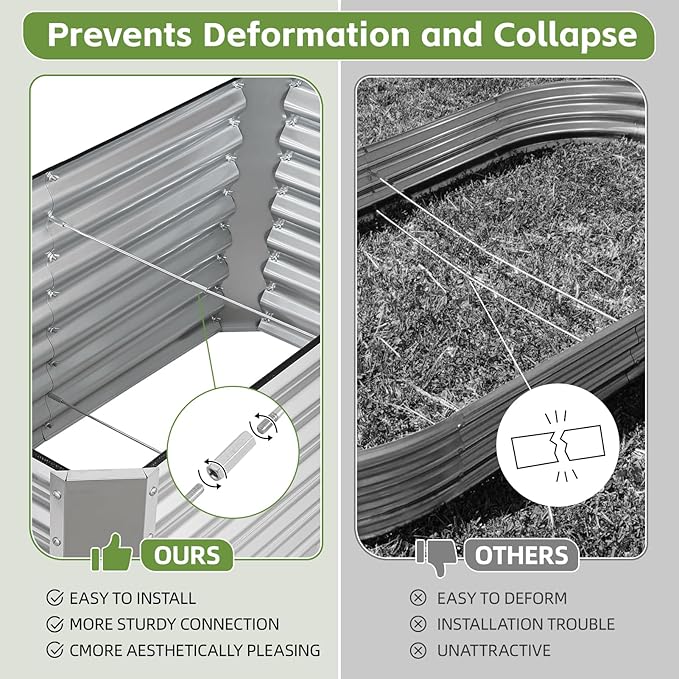 - 【 Superior Durability 】Made of 0.7mm thick zinc-coated steel with spray coating, our raised garden bed resists rust, corrosion, and deformation for 5x longer lifespan than thin competitors. Dual-folded edges ensure galvanized garden bed structural stability even in harsh weather.