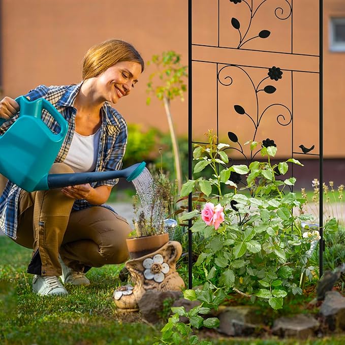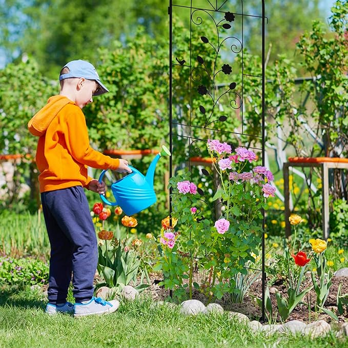 LZRS 4 Pack Rustic Iron Arch Decoration Garden Trellis with Black Metal Coating โ Perfect for Supporting Climbing Plants Outdoor, Roses, Vines, Flowers, and Vegetables.