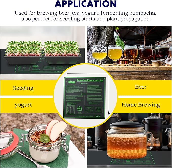iPower Durable Seedling Heat Mat Warm 20" x 20" Hydroponic Heating Pad Waterproof for Seed Starting Greenhouse and Germination