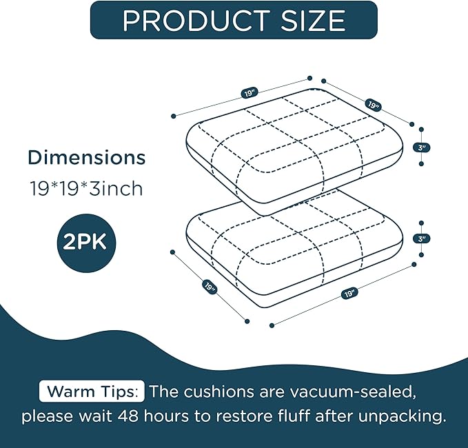 • Sized for Small Spaces, Big Comfort: Perfect for balconies, patio chairs, or compact patios—this 19x19 cushion brings lasting comfort and modern style to space-conscious outdoor setups.