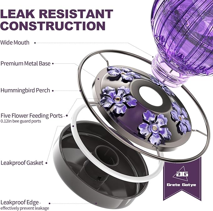 - 100% SATISFACTION GUARANTEE: Due to improper operation by the factory, a few purple hummingbird feeders were finished without the dye being fully baked at high temperature, resulting in fading on a few hummingbird feeders. (Please rest assured that fading has no harm to the birds). If there is fading during use, please contact us first, We will provide free replacement or refund service. Your satisfaction is our top priority.