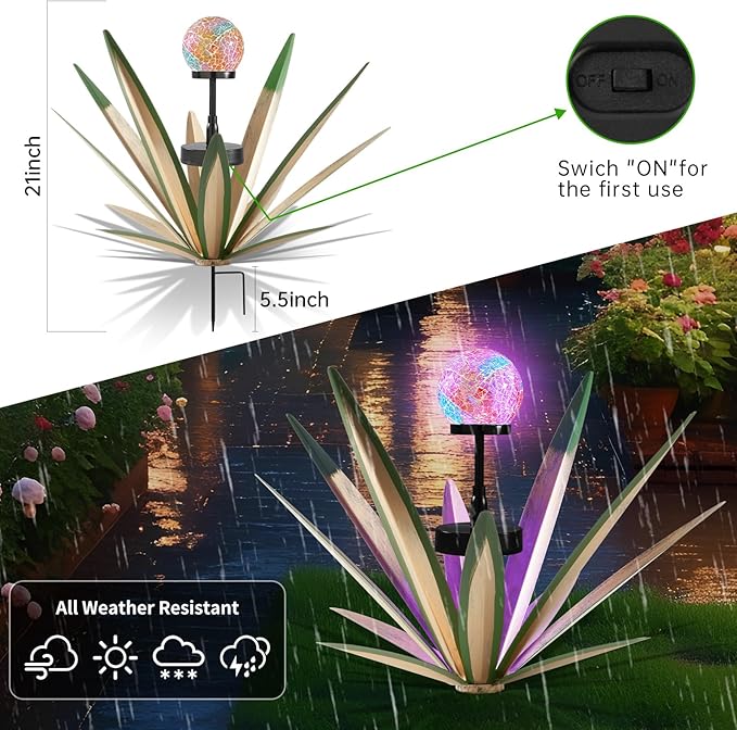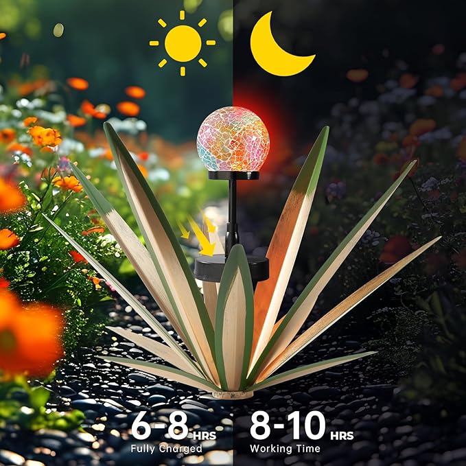• Solar powered light of agave sculpture can be lit up for 8-10 hours with a full charge