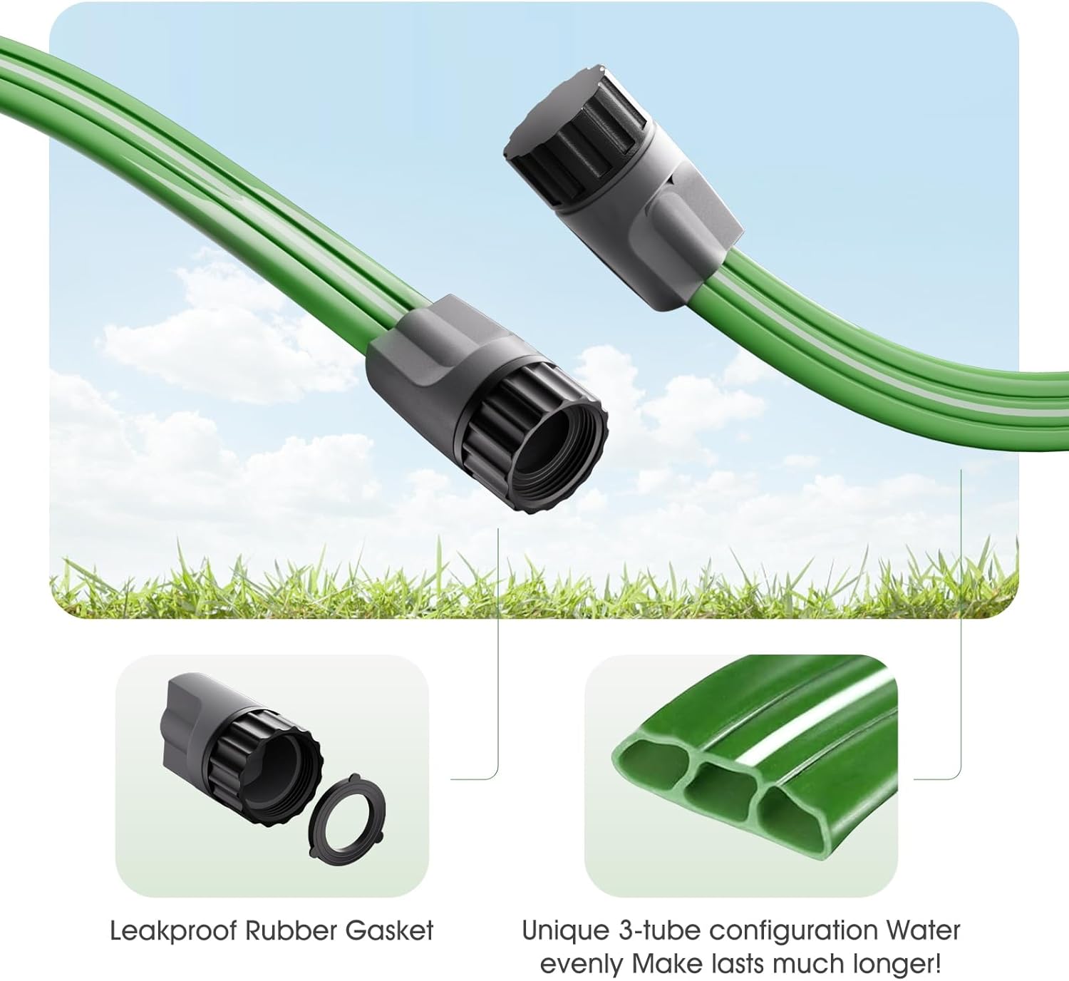- Leak-Proof Connectors for Hassle-Free Watering: Say goodbye to leaks! Our upgraded connectors feature anti-leak gaskets and reinforced threading for a secure, drip-free connection. Simply lay the hose down, turn on the water, and enjoy hands-free, efficient watering without the mess.