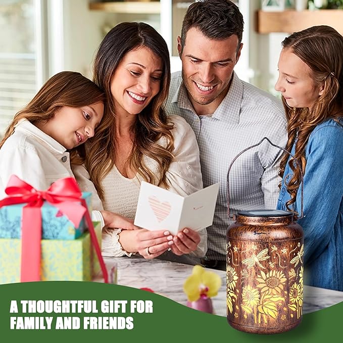 - 【Perfect Gift】 The Dragonfly Sunflower solar lantern can be hung on a tree or placed on a tabletop or the ground. It is the perfect decoration for gardens, yards, porches, paths, walkways, patios, balconies, and decks. It also makes a perfect gift for women on holidays, Valentine’s Day, Mother’s Day, weddings, parties, and birthdays.