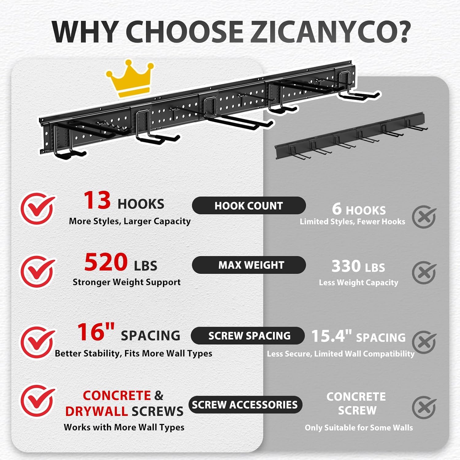 - Built to Last: This garage organization rack made from thickened solid carbon steel for unmatched durability. The coating resists water and corrosion, while PVC-wrapped hooks protect your tools from sharp edges