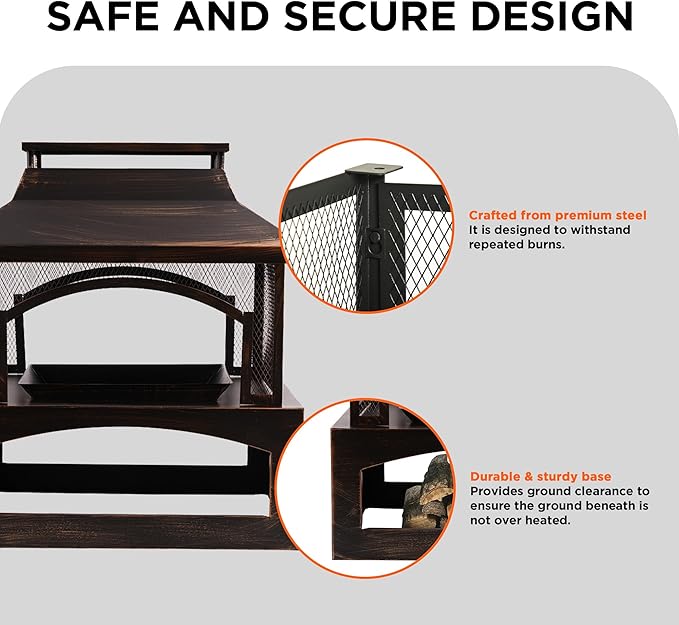 - Durable Steel Construction : Made from high-quality steel, this fire pit is built to withstand repeated use, ensuring long-lasting performance. The painted finish prevents corrosion and adds a stylish look.