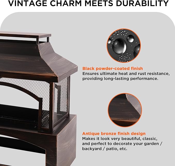 - Practical Log Rack : Outdoor fireplace for patio includes a stylish log rack on the bottom for easy and organized firewood storage.
