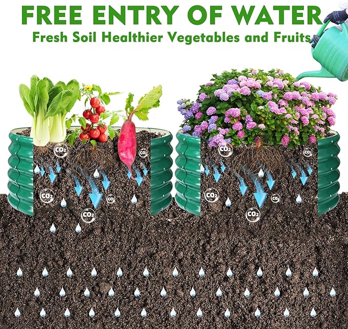 - Sleek Design: The Green color and clean lines of the galvanized raised bed add an aesthetic appeal to your garden or outdoor area. It blends well with the surroundings, adding a touch of elegance to your plantings