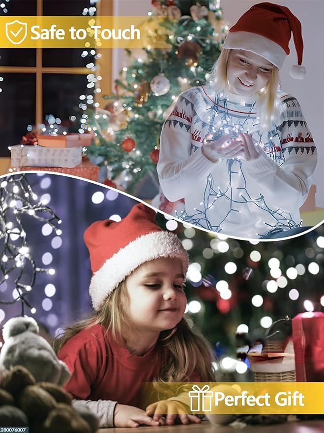 - 2025 New Upgraded Solar Christmas Lights: These solar string lights feature super-bright enhanced LED bulbs and offer 8 versatile lighting modes, a memory function, and auto on/off for effortless operation. With a larger solar panel, they achieve a higher energy conversion rate, while the larger capacity battery ensures extended illumination. Perfect for adding a festive touch, these twinkling lights on a green wire are ideal for decorating your home, yard, or outdoor spaces