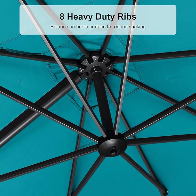 PURPLE LEAF 9' X 12' Right-left Tilt Patio Umbrella with Base Outdoor Cantilever Swivel Rectangle Umbrella Aluminum Offset Umbrella with 360-degree Rotation for Garden Deck Pool Patio Turquoise Blue