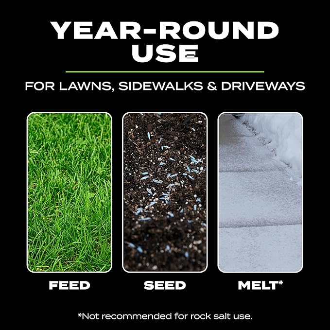 • Usage: Great for year-round use to weed, seed, fertilize and salt
