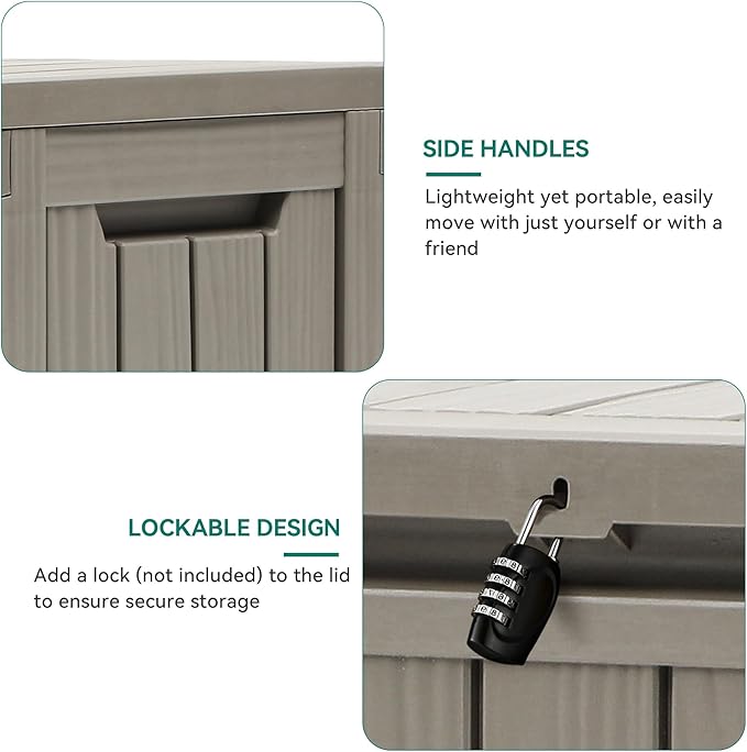 - Durable Construction: Made from reliable resin, the light brown deck box is built to endure harsh weather conditions like typhoons, rain, and snow, ensuring year-round usability
