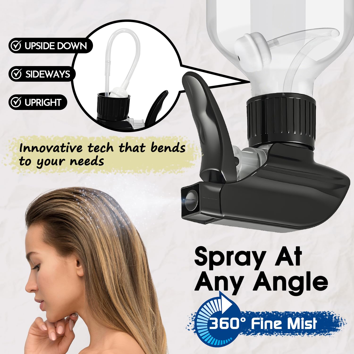 - 【Spray from Any Angle】- You will get 2 packs green plastic spray bottle for daily use. Our spray bottles allow for upside-down, sideways, and upright spraying, ensuring every drop is used efficiently. The straw is equipped with a gravity ball to facilitate multi angle spray, such as the scene where the bottle needs to be tilted or inverted. You can refill liquid when the liquid level is low, or adjust the position of gravity ball by shaking the bottle to obtain a better spray effect. The combination of the trigger sprayer and gravity ball is also suitable for 500ml bottles.