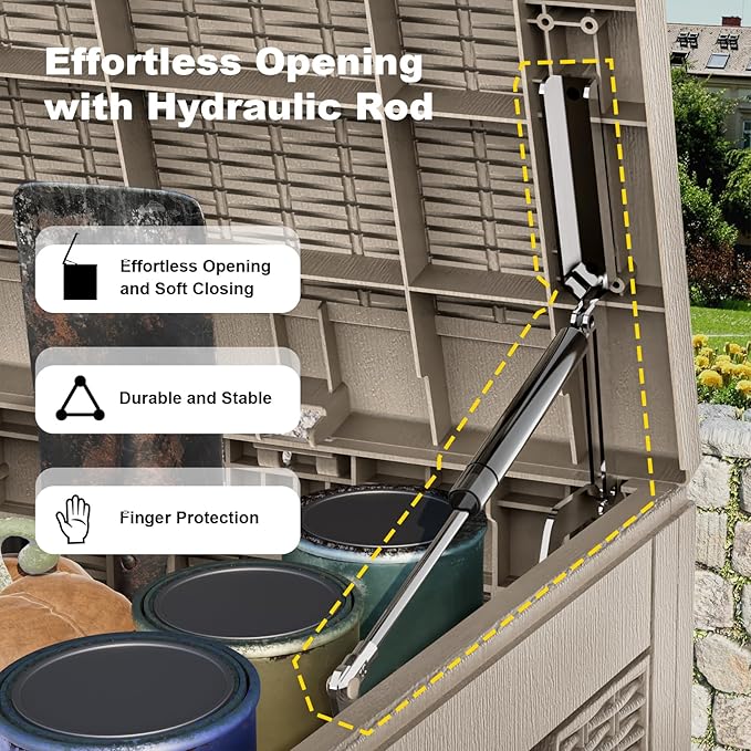 - EASY TO USE: The deck storage box is designed for convenience with built-in handles on both sides, allowing easy lifting and movement. Plus, for added security, you can install a password lock/small lock (not included) on the top cover