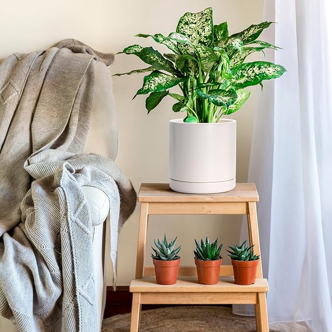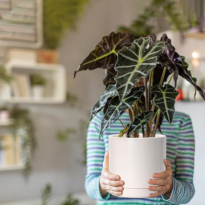 • Simple, elegant, and modern cylindrical straight round planter pot with saucer and drainage hole.