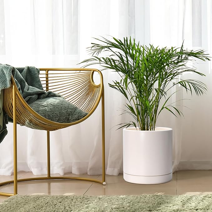 - Simple, elegant, and modern cylindrical straight round planter pot with saucer and drainage hole.
