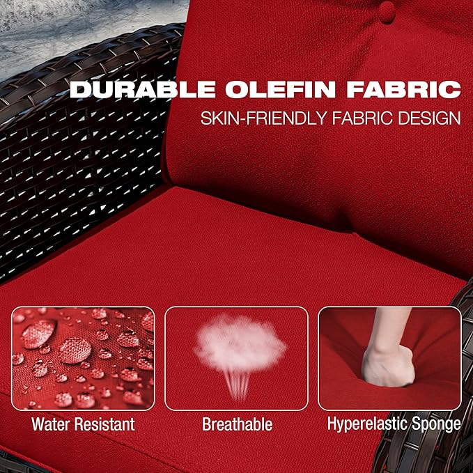 Joyside 5 Piece Patio Furniture Set, Outdoor Swivel Chair Sets with Thick Cushion and Ottoman, Wicker Patio Conversation Set for Porch, Deck Use (Brown/Red, 5 PCS)