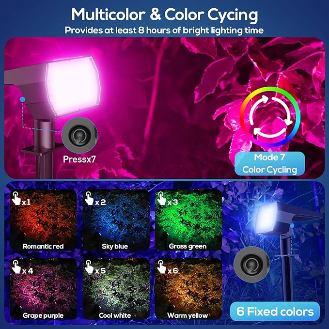 NYMPHY Solar Color Changing Lights, 7 Lighting Modes Solar Lights Outdoor Waterproof IP68, Multicolor RGB Outdoor Lights for Garden Yard Landscape Decorations- 4 Pack
