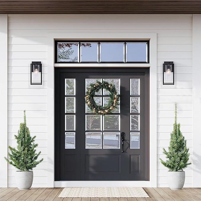 - 【Modern Outdoor Lights】Designed with clean lines and a classic matte black finish, this outdoor wall lights gives a simple yet elegant look, perfect for front doors, garages, porches, hallways, patios, and any other indoor or outdoor location.