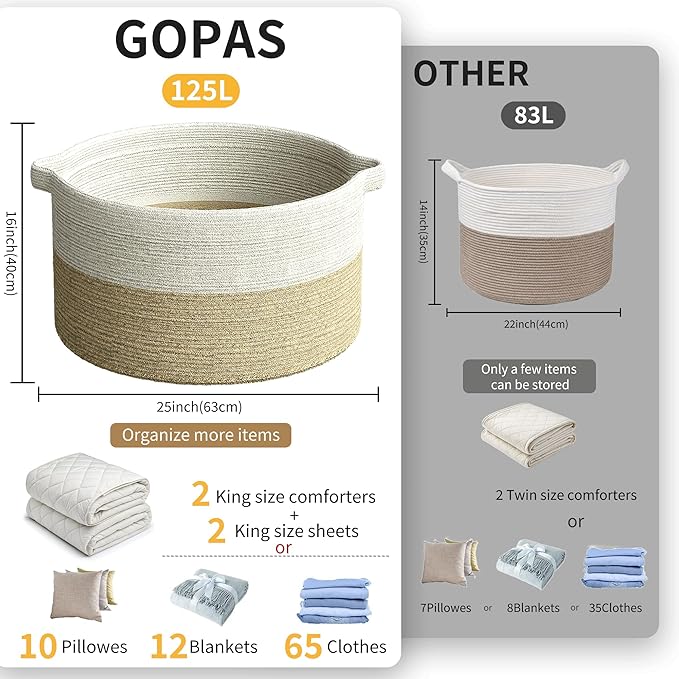- 2 Extra large Size Multi-Purpose Blankets Basket: 25" x 16", Our Large woven rope basket for storage originally designed as a Blanket storage basket but can be used for more. You can use it as large laundry basket, large storage basket, toy basket for kids, baby toy storage basket bin.Keep in the kids room, family room, or any room in the house that could use extra storage
