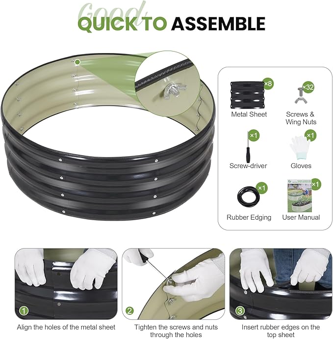 - 【Safe Edge & Rubber Trim】 The planter raised beds features a rolled top edge with a rubber strip to prevent injuries during setup and gardening. This thoughtful design enhances safety, especially for families with children and pets.