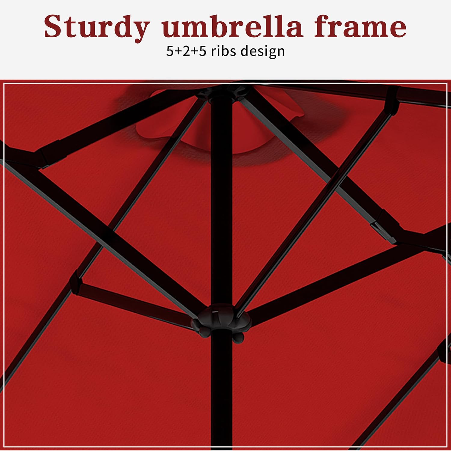 - Extra Large Shade: 16FT x 9 FT patio umbrella provides larger shading area up to 133 square feet shade area when fully open.Bringing a shady feel to a sultry afternoon. This double-sided patio umbrella is an ideal choice for both home use and market.